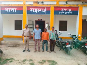 अपराध की रोकथाम हेतु अपराधियो के विरुद्ध चलाये जा रहे अभियान के अन्तर्गत थाना मझगई पुलिस टीम द्वारा 03 नफर अभियुक्त गिरफ्तार
