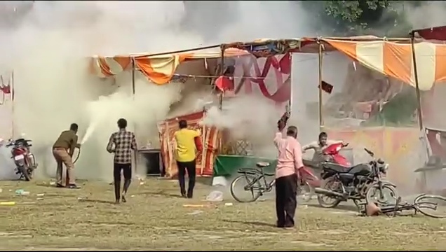 सावधान इण्डिया न्यूज, मथुरा (उ.प्र.)। दीपावली त्यौहार पर मथुरा जिले में एक बड़ा हादसा हो गया। जिले के राया स्थित राधा गोपाल बाग में लगी पटाखों की दुकानों में अचानक आग लगने से कोहराम मच गया। हादसे में तीन लोगों की मौत होने की भी खबर मिली है। कई अन्य लोग घायल हो गये और बाइकें भी बुरी तरह से जलकर खाक हो गयीं हैं। बड़े हादसे की सूचना मिलते ही प्रशासन में हड़कम्प मच गया। मौके पर मौजूद अग्निशमन विभाग के अथक प्रयासों से आग पर काबू पाया गया। भारी पुलिसबल व अन्य अधिकारी मौके पहुंच गये। राहत व बचाव कार्य जारी है।