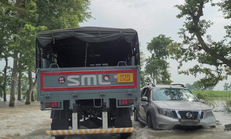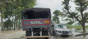 पलिया-भीरा मार्ग पर फिर चलने लगा बाढ़ का पानी