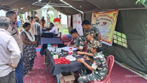 जहां चिकित्सा के डॉक्टर गुरबेदर सिंह ने दूर-दूर से आए ग्रामीणों की जांच कर निशुल्क दवाइयों का वितरण किया, इसमें लगभग महिला पुरुष व बच्चों की संख्या मिलाकर 167 मरीज देखे गए तो वहीं दूसरी पशु चिकित्सक डॉ शालिनी परिहार ने ग्रामीणों को द्वारा लाए गए बीमार पशुओं का चिकित्सा परीक्षण कर पशुओं की निशुल्क दवाइयां दी गई। और साथ ही बीमारियों से बचाव के लिए तमाम तरह की जानकारियां भी दी । आपको यह भी बता दें सशस्त्र सीमा बल द्वारा सीमावर्ती क्षेत्र में समय समय पर मानव चिकित्सा व पशु चिकित्सा कार्यक्रम आयोजित करके सीमावर्ती क्षेत्र के लोगों के दिलों में अपनी जगह बनाता है एवं उनको सहायता प्रदान करता है |