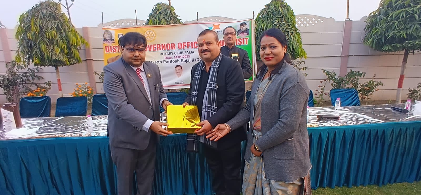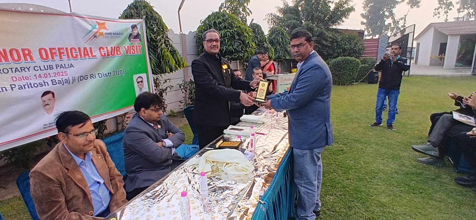 कार्यक्रम के दौरान अतिथिगणों को स्मृतिचिन्ह व अंगवस्त्र भेंट किये गये। रोटेरियन डीके श्रीवास्तव के फार्म हाउस पर आयोजित उक्त कार्यक्रम से पूर्व रोटरी क्लब पलिया के सेवा कार्यों के निरीक्षण के दौरान मंडलाध्यक्ष परितोष बजाज के साथ आये अधिकारियों के त्रिसदस्यीय दल ने आश्रम पद्धति बालिका विद्यालय में वस्त्र वितरण करते हुये रोटरी की पतंग उड़ाई गयी, ततपश्चात पुलिस चौकी चौराहे पर संचालित वस्त्र वितरण केंद्र का निरीक्षण करते हुये, स्व0 रामचरण शाह की मूर्ति पर माल्यापर्ण, कन्या पाठशाला पुस्कालय में छः पंखों का दान किया,गुरुनानक स्कूल में नवीन पुस्तकालय की स्थापना के साथ खिचड़ी भोज व श्रीवास्तव जी के फार्म हाउस पर वृक्षारोपण भी किया गया।