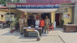 लखीमपुर खीरी: संपूर्णानगर पुलिस ने चार अभियुक्त को एक अवैध असलहे व चोरी की पानी की मोटर के साथ किया गिरफ्तार
