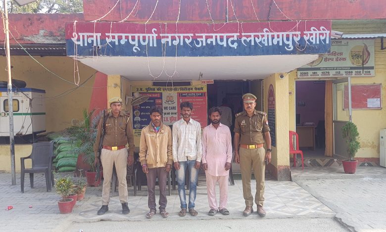 लखीमपुर खीरी जिले के पुलिस अधीक्षक गणेश प्रसाद साहा के दिशा निर्देशन में जिले में शांति व्यवस्था कायम रखने को लेकर चलाए जा रहे अभियान के चलते बुधवार को संपूर्णानगर क्षेत्र के महंगपुर में उ०नि० चंद्र प्रकाश तिवारी ने अपने हमराहियों के साथ मिलकर क्षेत्र के ही महंगपुर से तीन अभियुक्तों को शांति भंग करने के आरोप में गिरफ्तार कर लिया,जिनका नाम राजू कुमार पुत्र रामस्वरूप व अग्रेज उर्फ विक्की पुत्र रामस्वरूप और राकेश पुत्र रामस्वरूप निवासी महंगपुर थाना संपूर्णानगर बताया जा रहा है जिन को पुलिस ने शांति व्यवस्था भंग करने के आरोप में संबंधित धाराओं में चालान कर दिया गया है ।
