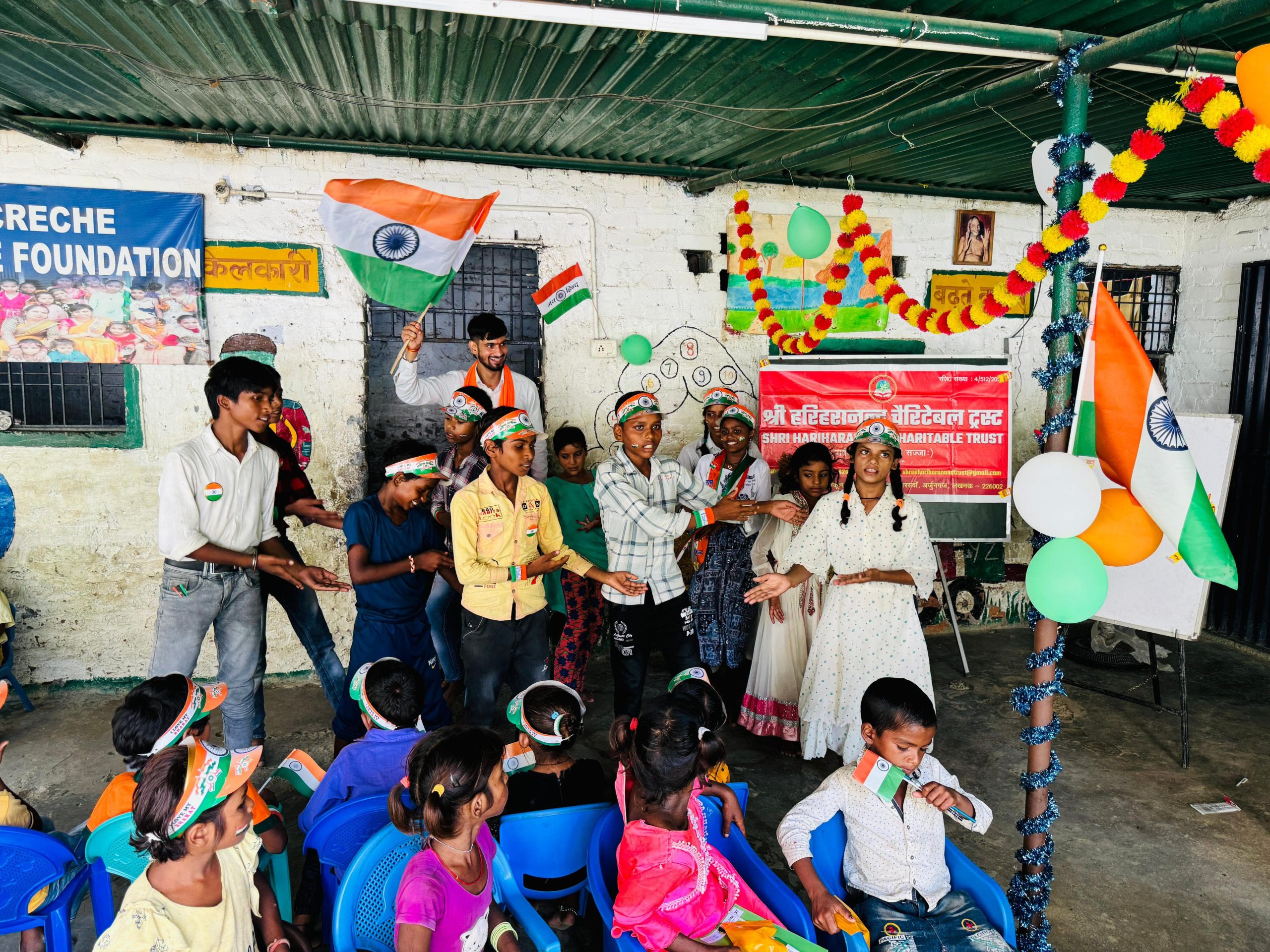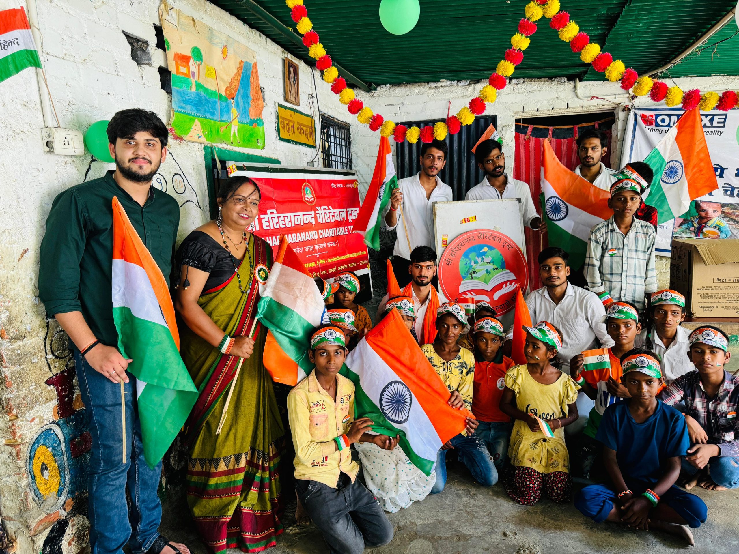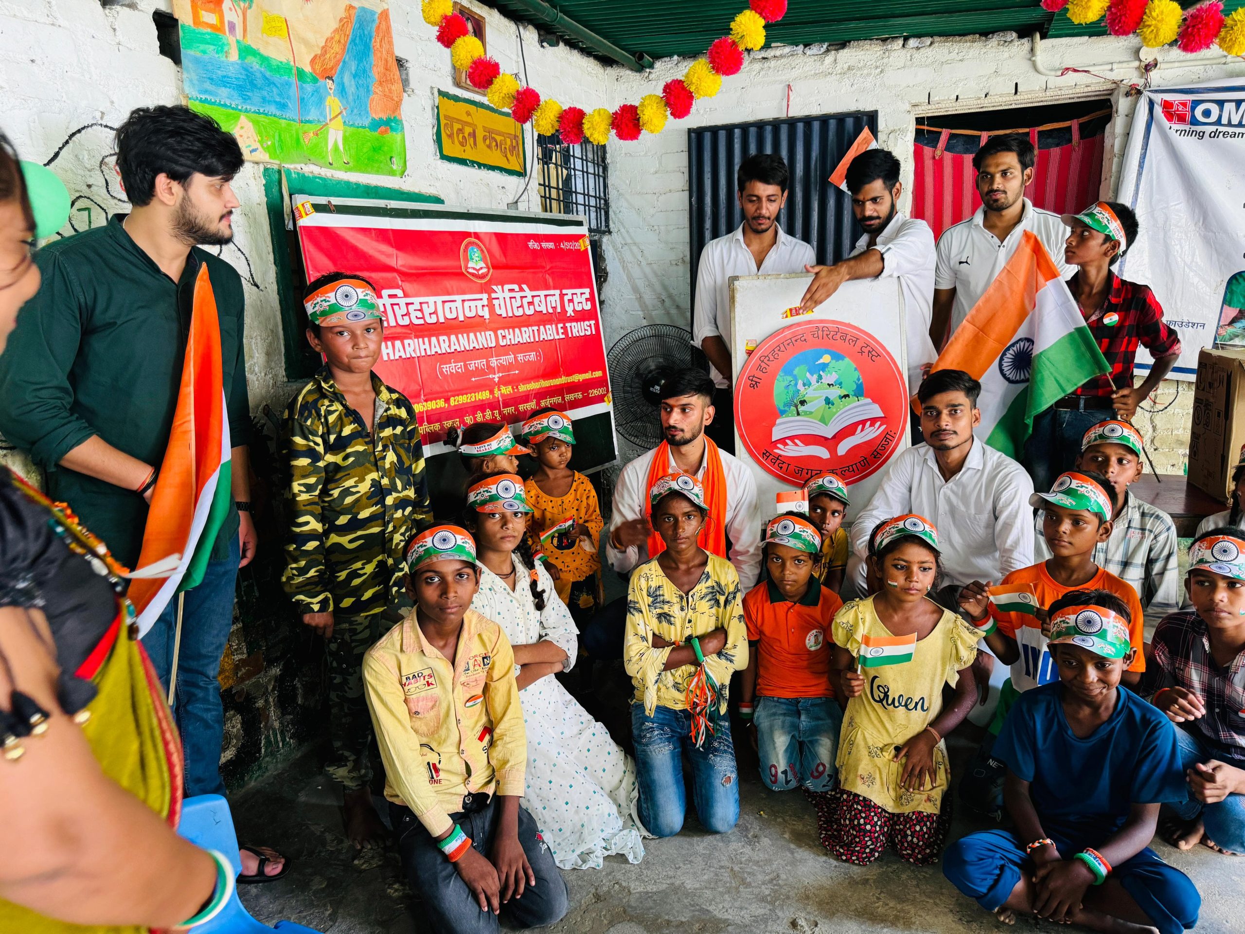 78 वें 🇮🇳 स्वतंत्रता दिवस के शुभ अवसर पर श्री हरिहरानन्द चैरिटेबल ट्रस्ट द्वारा बड़े धूम धाम से ये पर्व गरीब और असहाय आर्थिक रूप से कमजोर गरीब बस्तियों में रहने वाले बच्चो के साथ हाथ से हाथ मिला के आज़ादी के इस अमृत महोत्सव को मनाया और अनेकों प्रकार के उपहार एवं कॉपी -किताब और पेन एवं लड्डू बांटे गए और उनके साथ हर प्रकार से खड़े रहने का अश्वासन दिया बच्चे उपहार एवं लड्डू पाकर बहुत खुश हुए और पूरे हर्षोल्लास के साथ भारत माता की जयकारे के साथ नृत्य आदि का भी कार्यकम संपन्न हुआ और बच्चों ने संस्था का धन्यवाद और आभार व्यक्त किया
