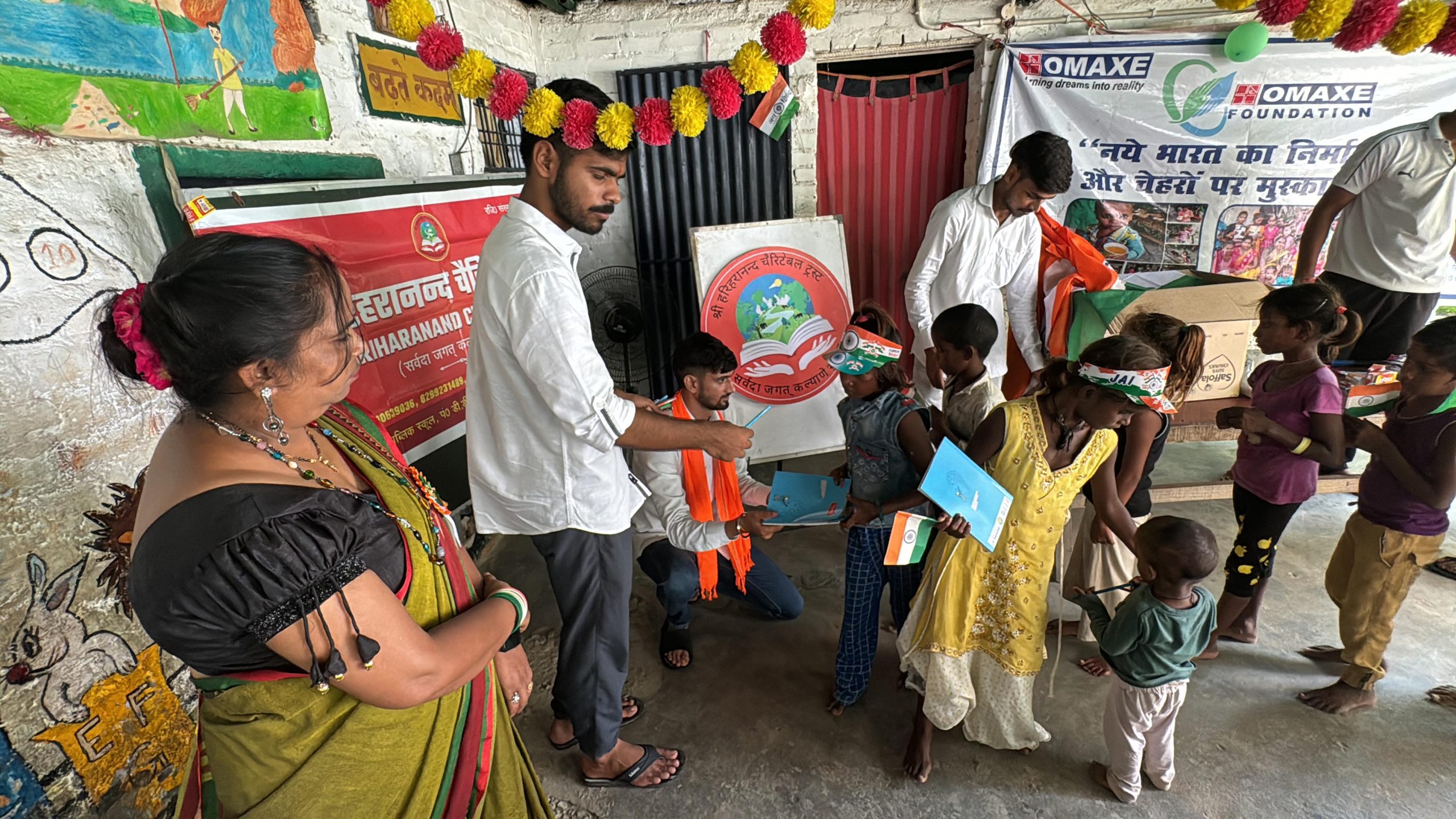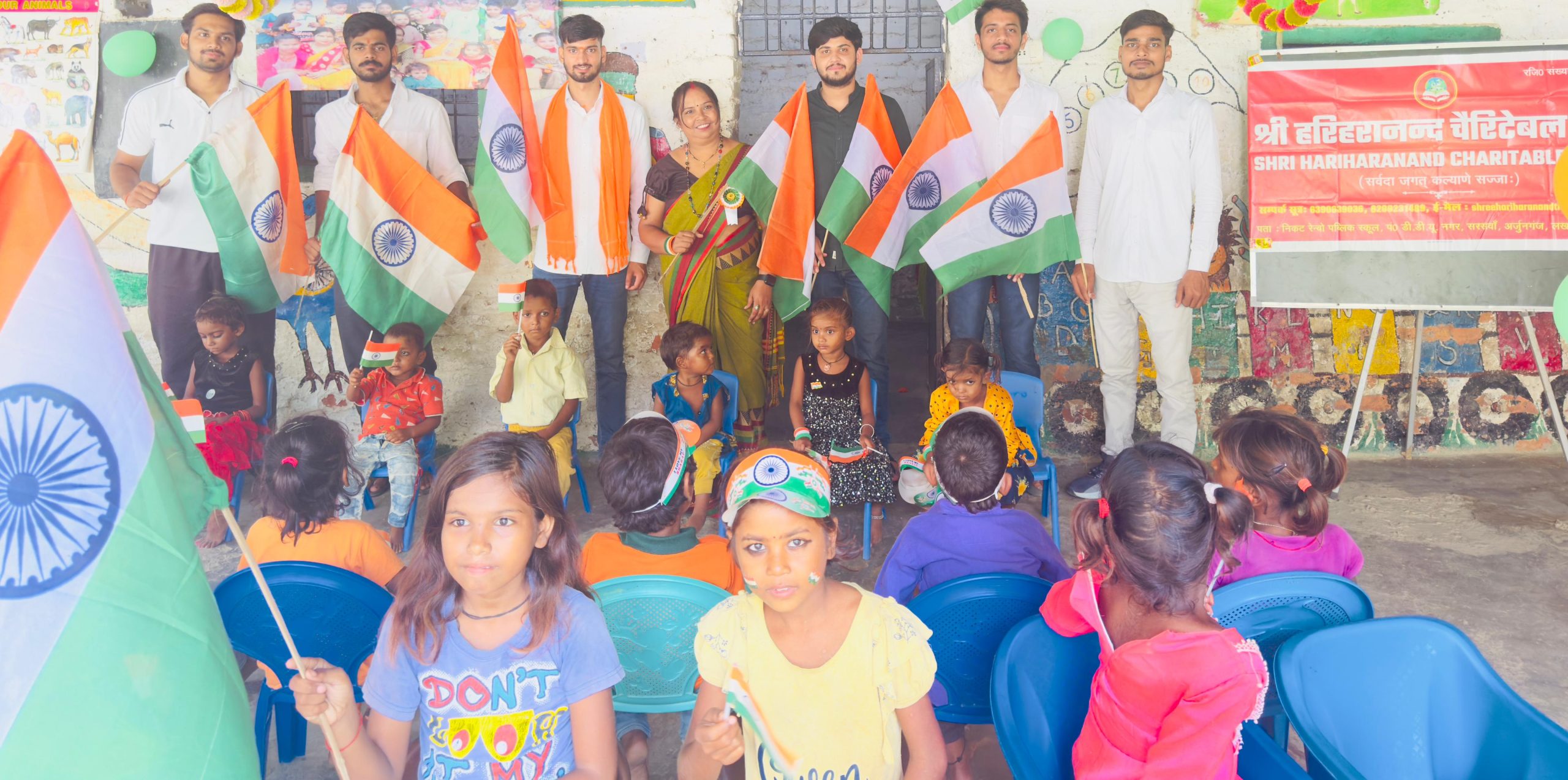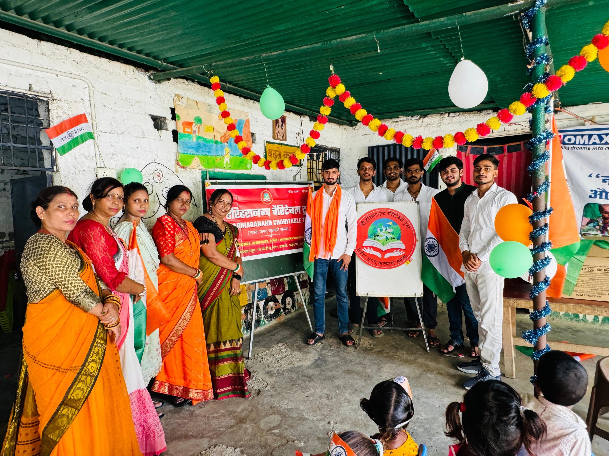 श्री हरिहरानंद चैरिटेबल ट्रस्ट ने ध्वजारोहण के बाद बच्चों में लेखन सामग्री एवं मिष्ठान वितरित