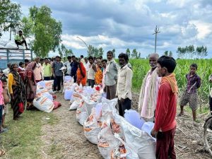 तहसील पलिया की ग्राम पंचायत कुंवरपुर कलां खैरा में बाढ़ राहत किट वितरण किया गया